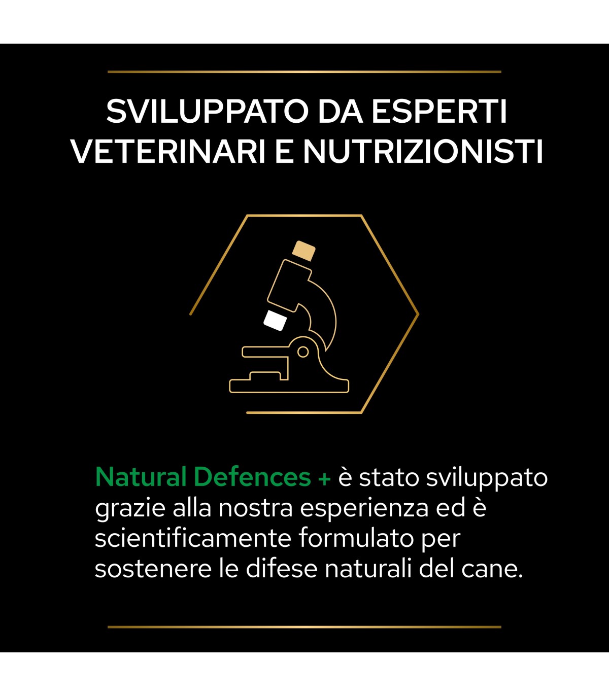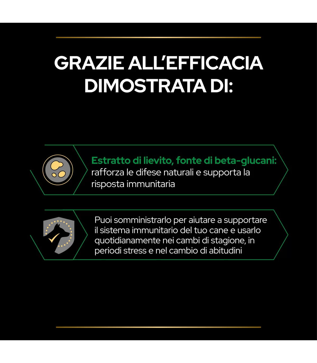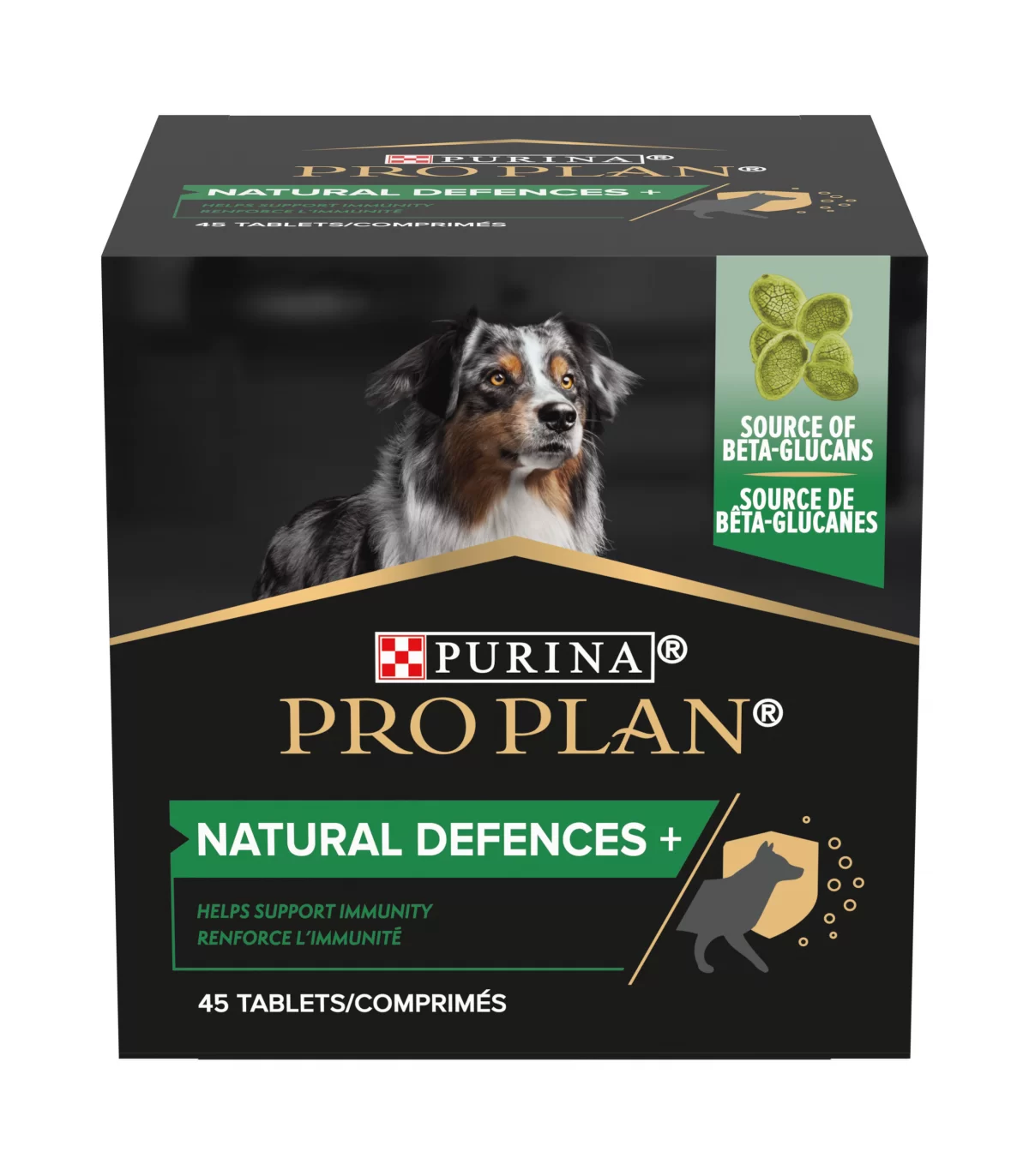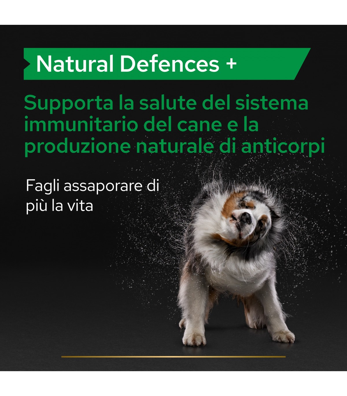 Pro Plan Supplements Natural Defences + è un alimento complementare per cani adulti di tutte le taglie che protegge il tuo cane dall’interno all’esterno perché contiene estratto di lievito (fonte di beta-glucani) che rafforza le difese naturali e supporta la risposta immunitaria.