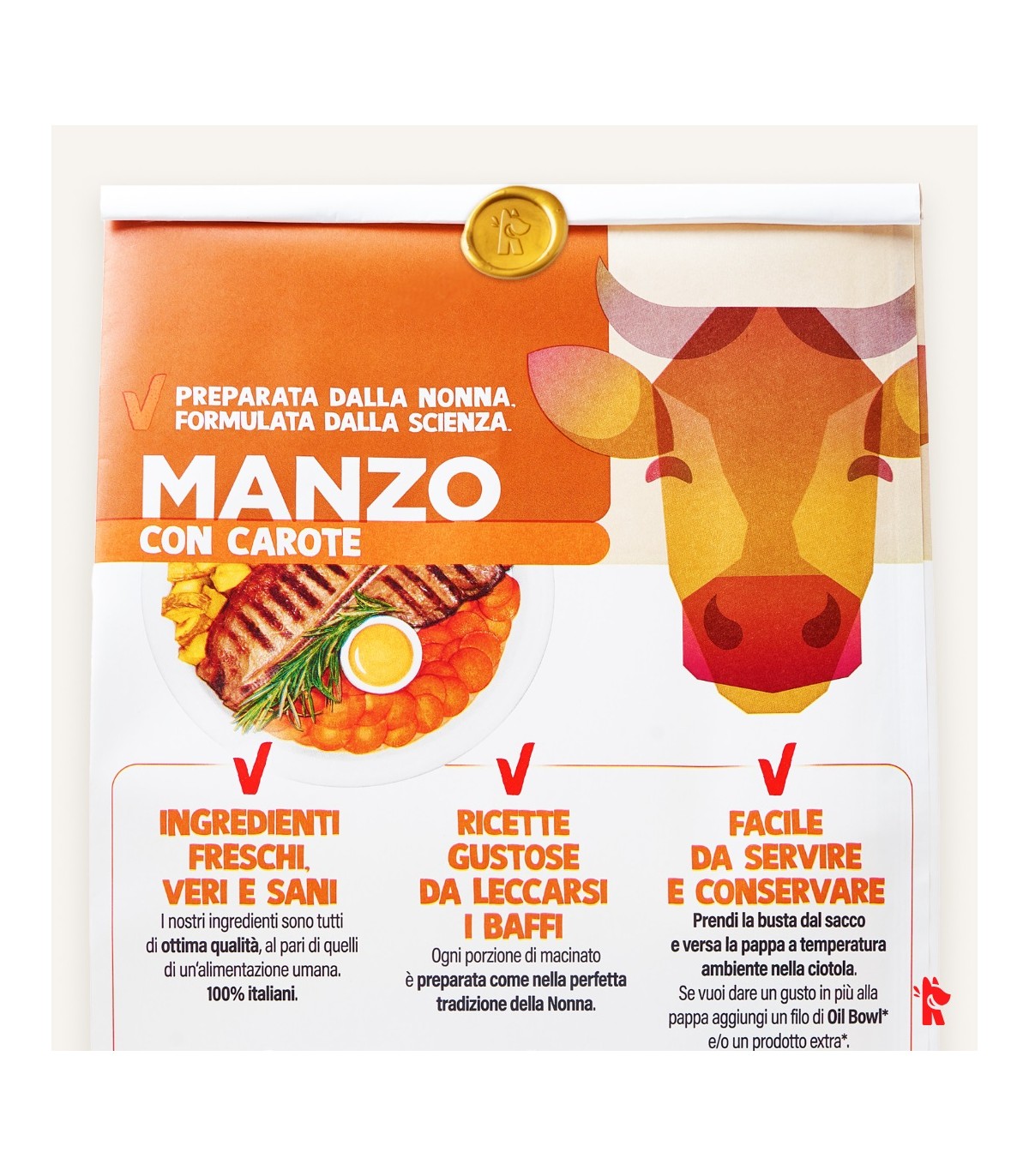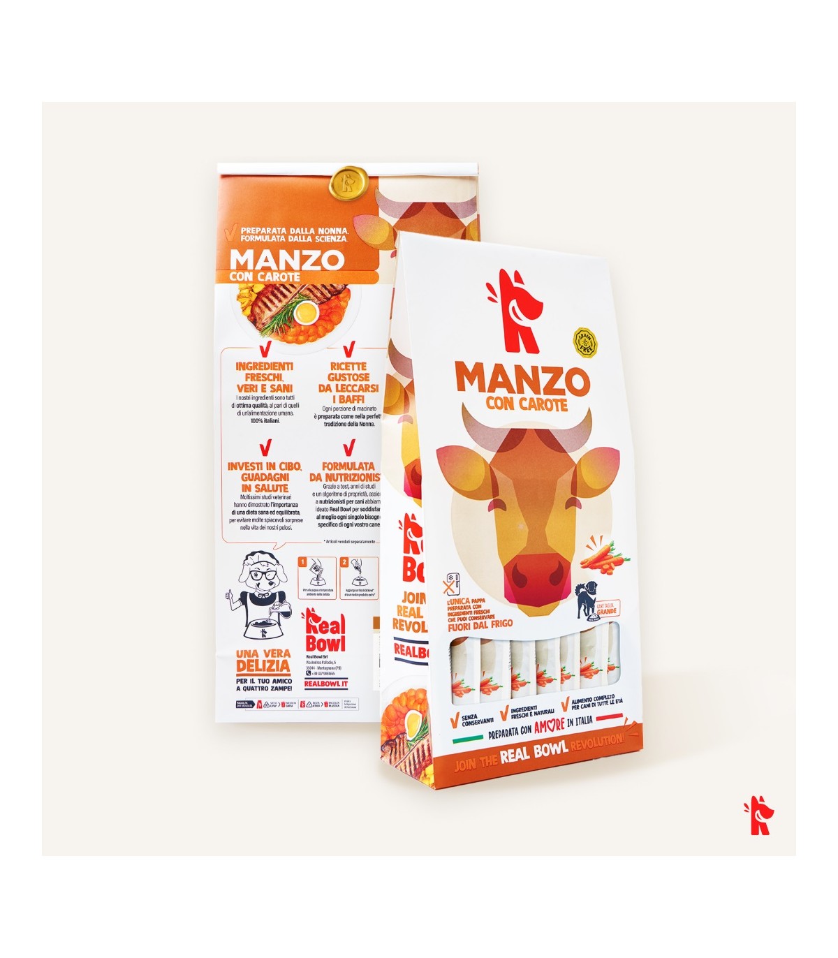 Le ricette Real Bowl contengono alimenti freschi in origine destinati al consumo umano. Il prodotto è da considerarsi come un pasto sostituivo per la dieta casalinga e vanta la comodità di poterlo utilizzare velocemente e conservarlo a temperatura ambiente.