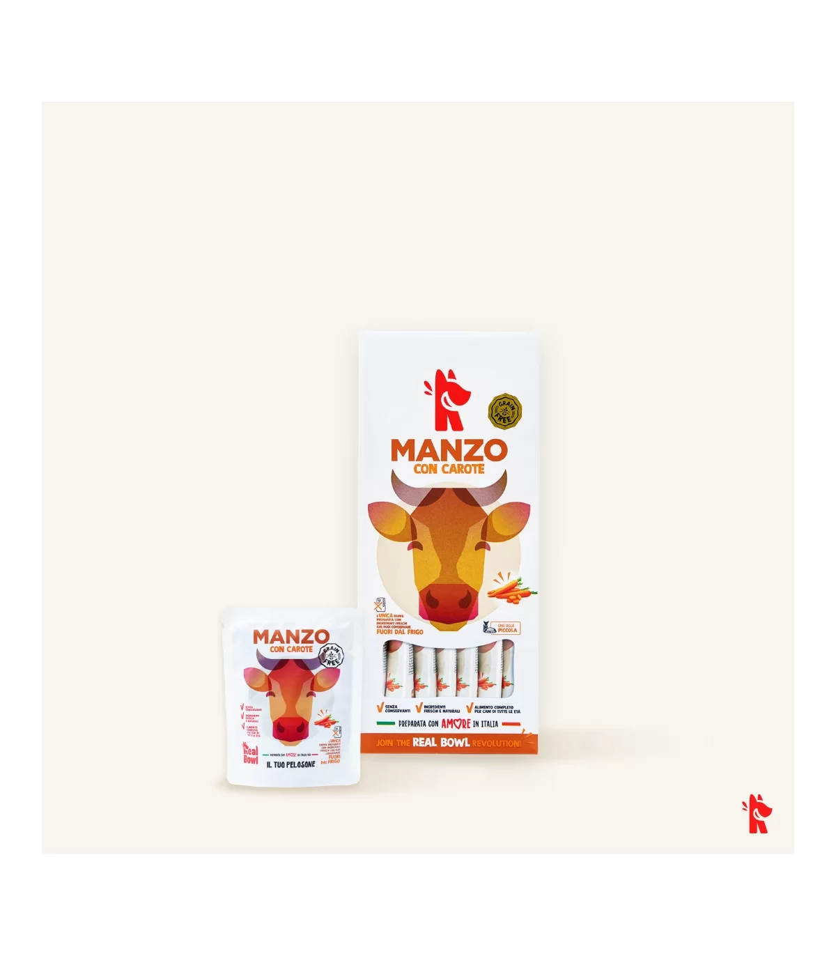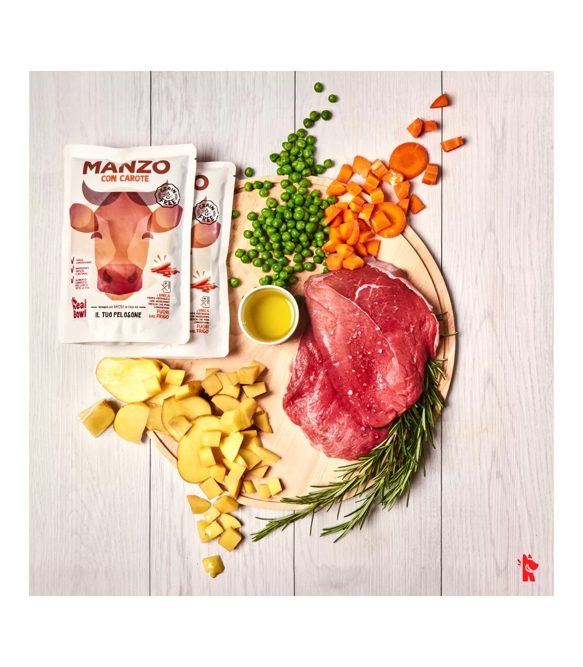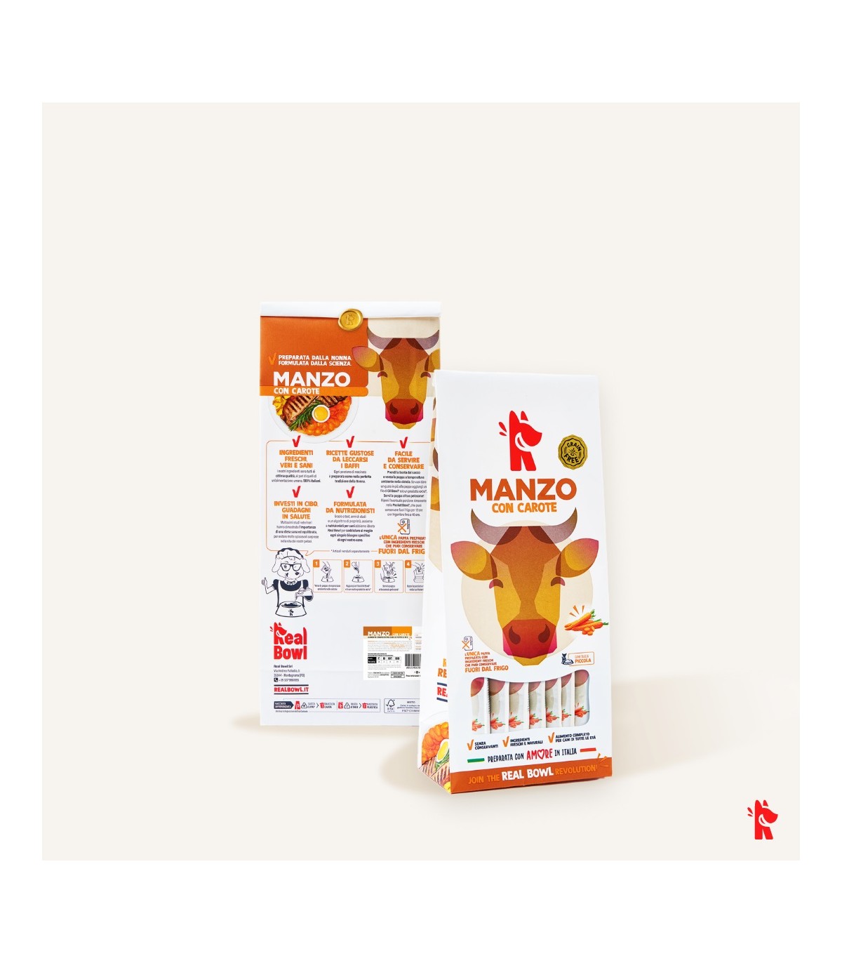 Le ricette Real Bowl contengono alimenti freschi in origine destinati al consumo umano. Il prodotto è da considerarsi come un pasto sostituivo per la dieta casalinga e vanta la comodità di poterlo utilizzare velocemente e conservarlo a temperatura ambiente.