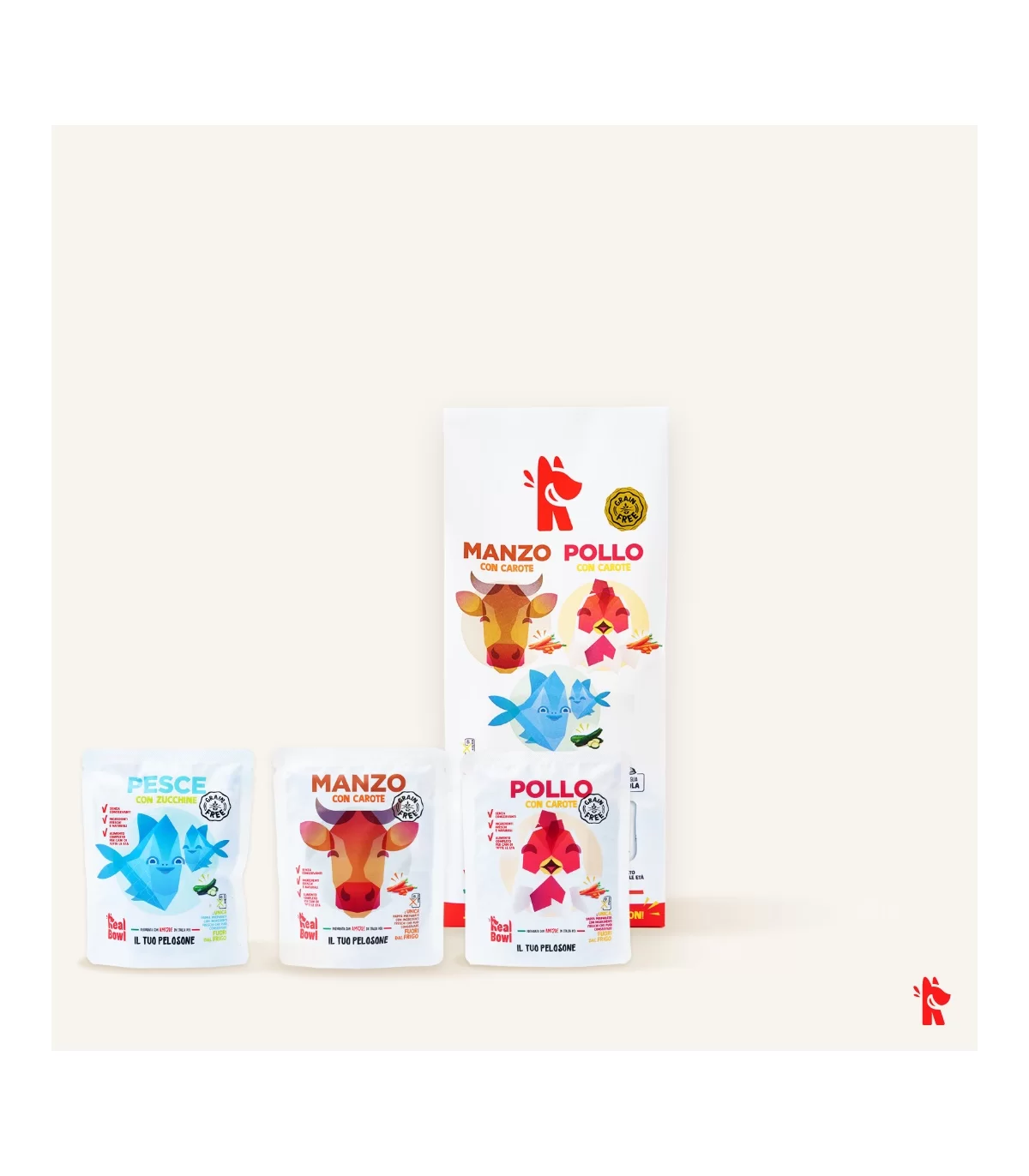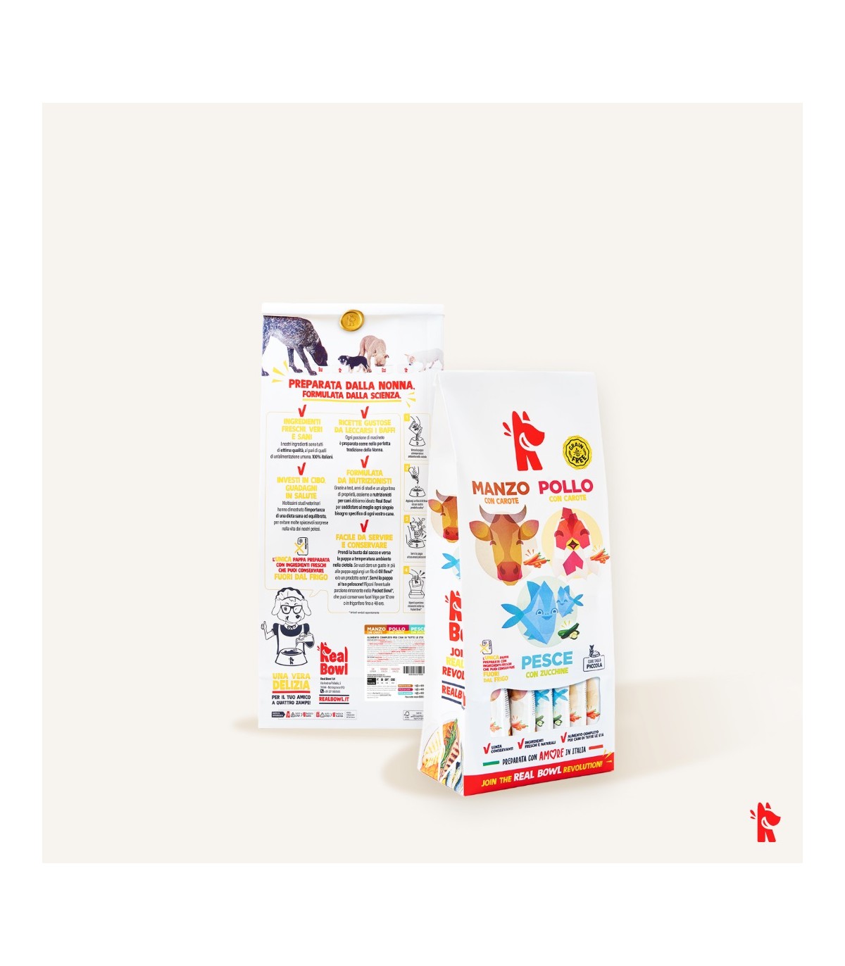 Real Bowl cane grain free MIX 2 Manzo 3 Pollo 2 Pesce bustine 150 gr