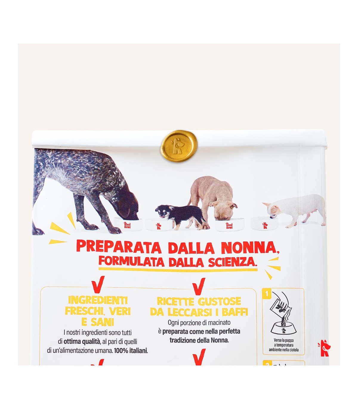 Le ricette Real Bowl contengono alimenti freschi in origine destinati al consumo umano. Il prodotto è da considerarsi come un pasto sostituivo per la dieta casalinga e vanta la comodità di poterlo utilizzare velocemente e conservarlo a temperatura ambiente.