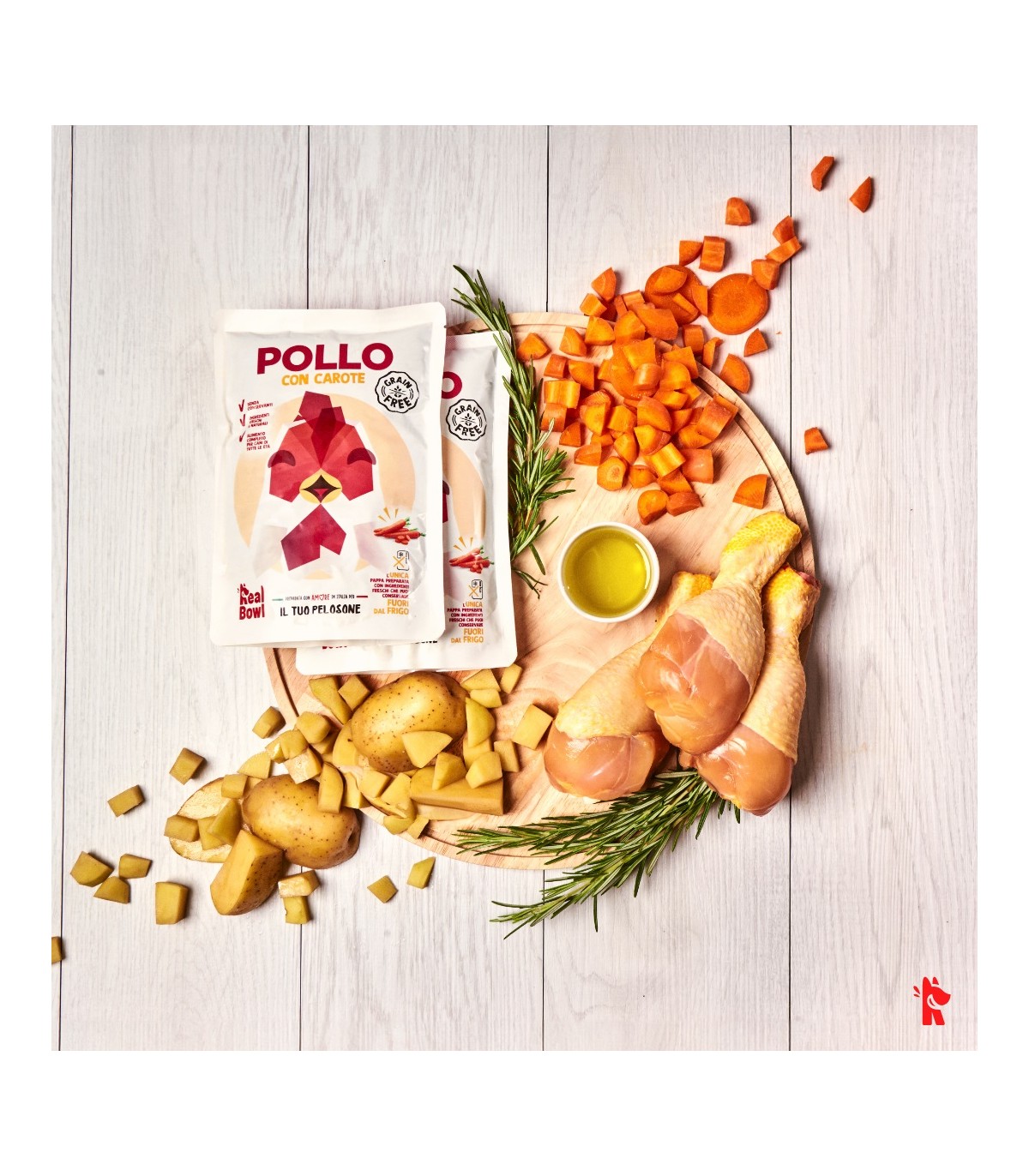 Le ricette Real Bowl contengono alimenti freschi in origine destinati al consumo umano. Il prodotto è da considerarsi come un pasto sostituivo per la dieta casalinga e vanta la comodità di poterlo utilizzare velocemente e conservarlo a temperatura ambiente.