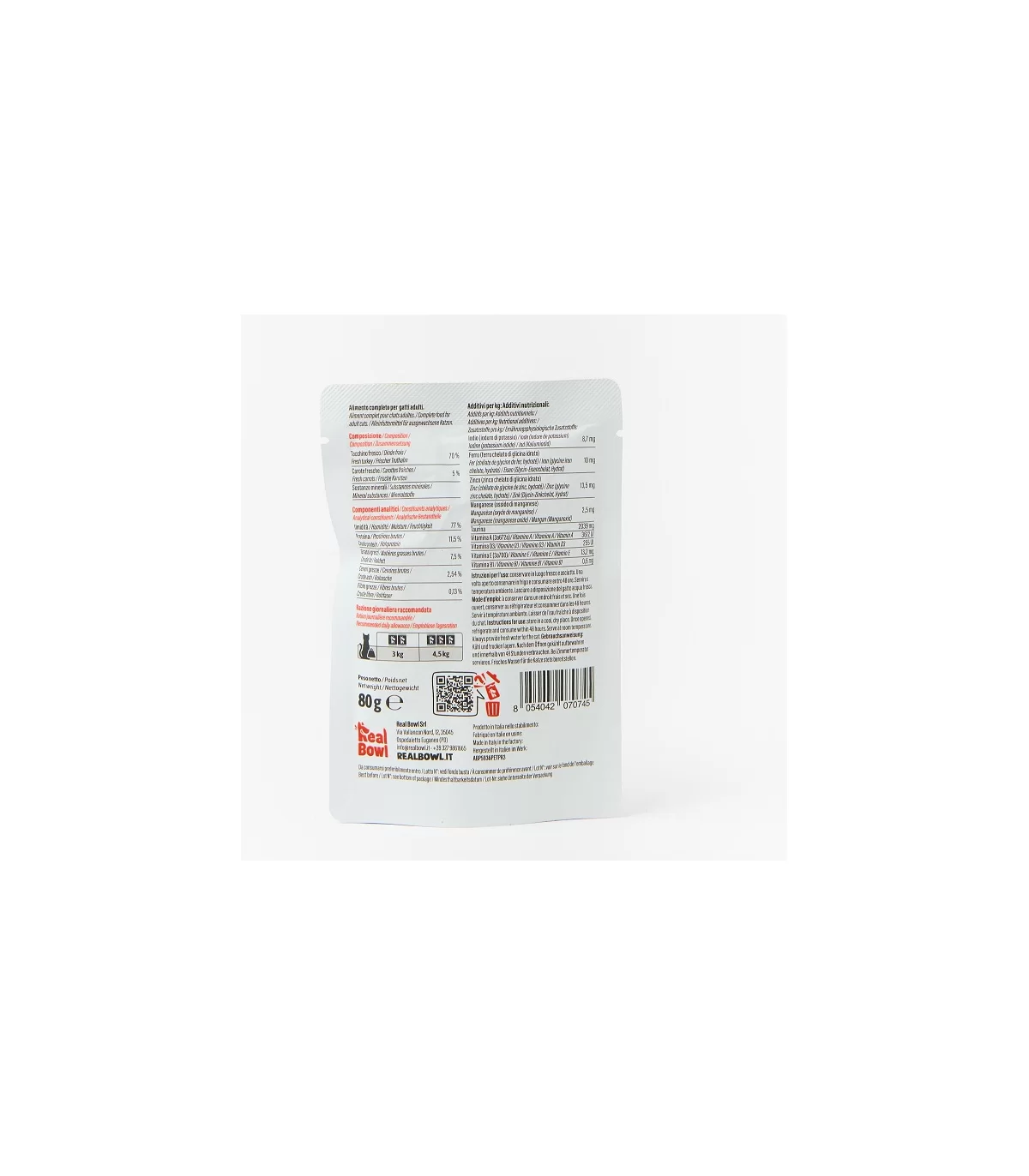 Le ricette Real Bowl contengono alimenti freschi in origine destinati al consumo umano. Il prodotto è da considerarsi come un pasto sostituivo per la dieta casalinga e vanta la comodità di poterlo utilizzare velocemente e conservarlo a temperatura ambiente.