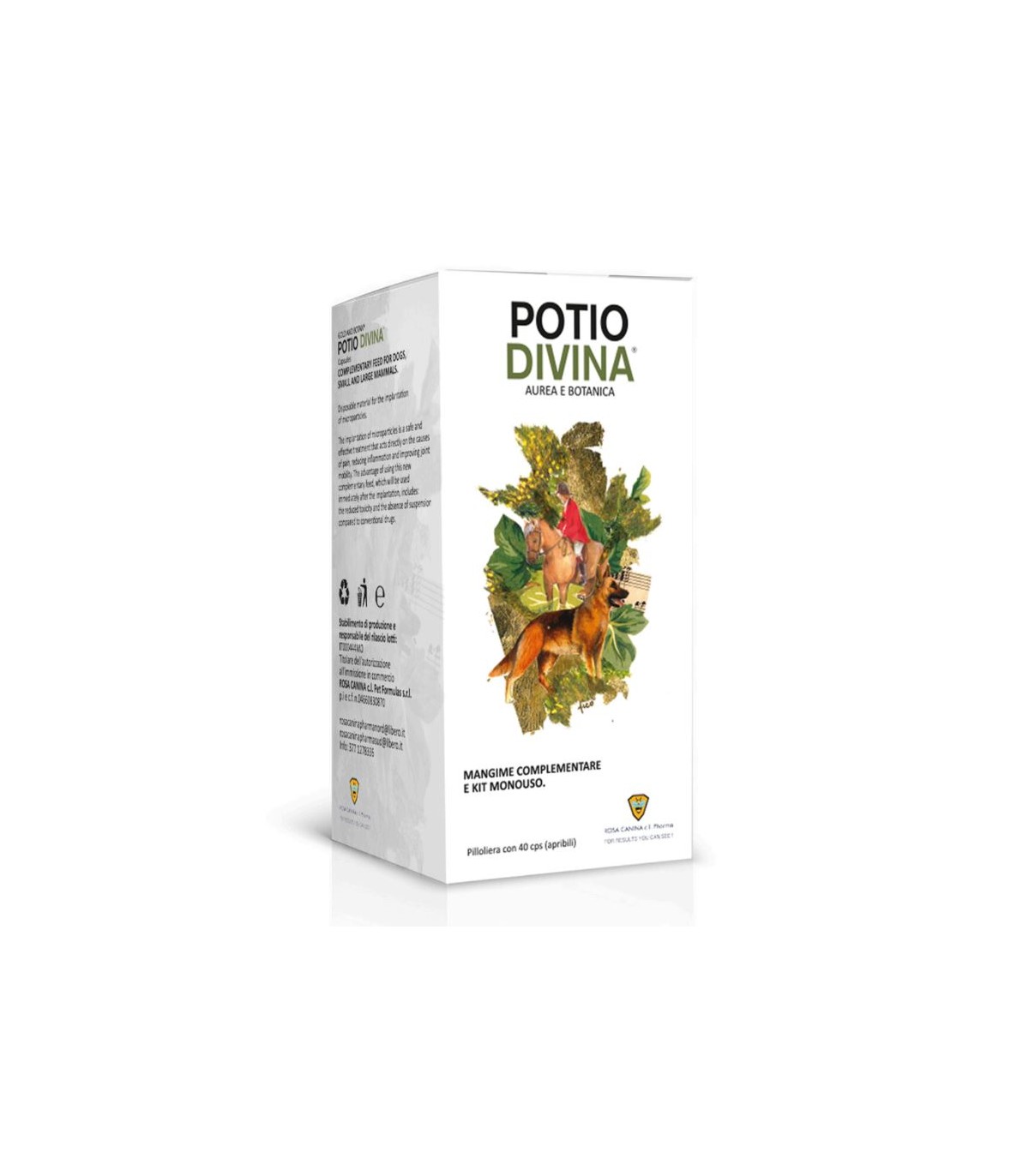 USO: Gli impianti di microparticelle d’oro (24k.) da effettuare in anestesia, al fine d’immobilizzare l’animale, sono una forma di agopuntura. Tuttavia richiedendo all’azienda farmaceutica il manuale d’uso sulle tecniche d’impianto, corredato da foto e immagini esaustive, ogni Chirurgo Veterinario potrà acquisire una certa manualità che gli consentirà di adoperare gli impianti anche per altre condizioni patologiche. Il fitoterapico dovrà essere somministrato