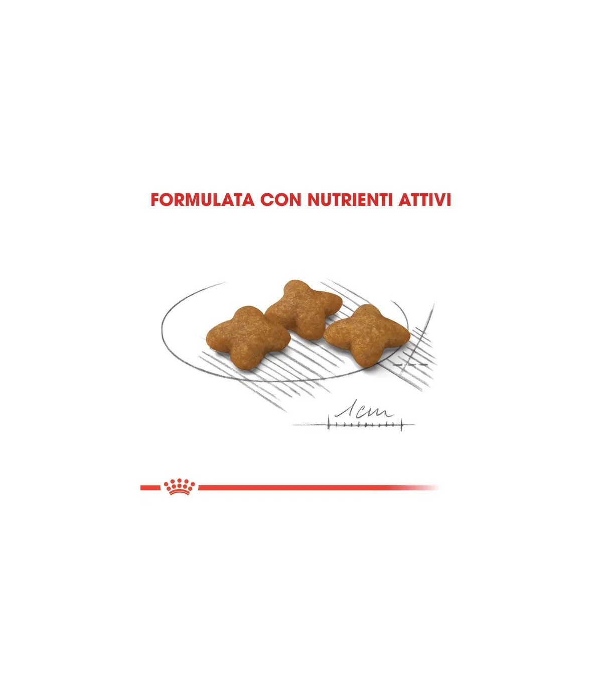 La combinazione di un elevato tenore in proteine (26%) e di un apporto moderato di grassi (14) contribuisce al mantenimento del peso ideale. Creato per i cani sterilizzati di piccolissima taglia, il profilo nutrizionale è stato arricchito con L-carnitina e contiene fibre che promuovono il benessere intestinale per dare al tuo cane la stessa quantità di cibo con un apporto calorico ridotto.