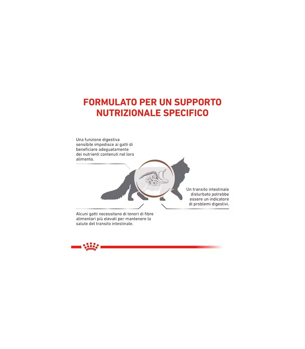 ROYAL CANIN® Gastrointestinal Fiber Response è specificamente formulato per aiutare a sostenere la salute dell'apparato digerente del tuo gatto per la compensazione della cattiva digestione o sensibilità gastrointestinali simili.