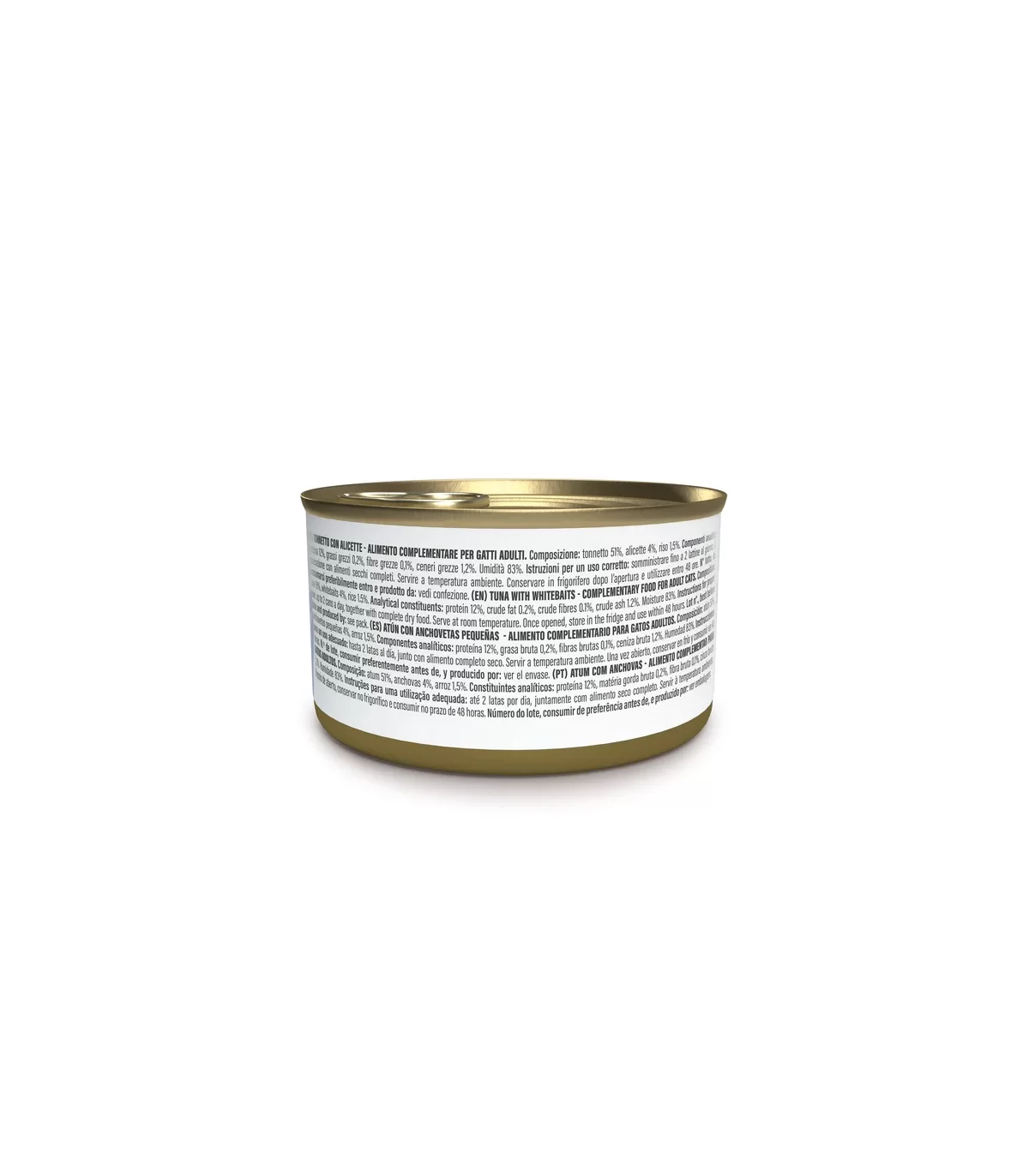 Veri filetti di tonno cotti a vapore con pesciolini interi, in brodo per un Mix naturale e irresistibile.