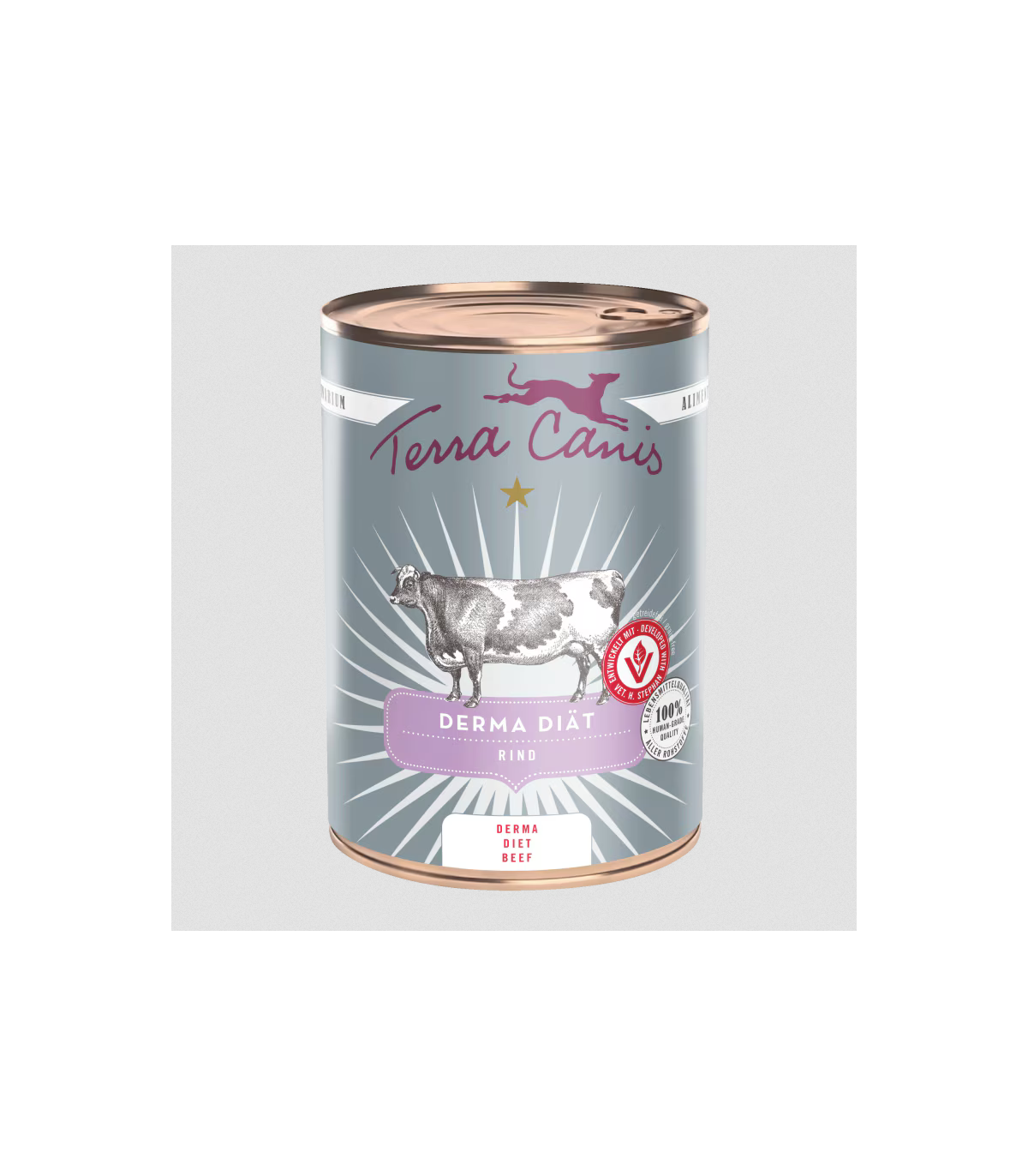 La linea AliVet “Dieta Derma” di Terra Canis è stata appositamente sviluppata per supportare la salute cutanea del cane in caso di dermatosi ed eccessiva perdita di peli. Grazie a una ricetta ricca e bilanciata, composta da ingredienti di alta qualità, questo mangime dietetico completo fornisce al cane acidi grassi essenziali come l’acido docosaesaenoico (DHA), l’acido linoleico (LA) e l’acido eicosapentaenoico (EPA), che favoriscono una funzione dermica sana e un pelo lucido.