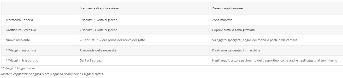 - Favorisce uno stato di calma nei gatti e facilita l’adattamento dell’animale a situazioni stressanti, aiutando ad evitare comportamenti indesiderati associati allo stress: