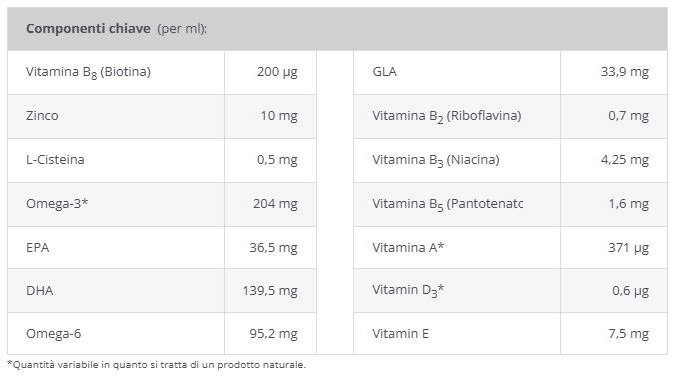 - Ricco di Omega-3 (DHA ed EPA) e Omega-6 (GLA).